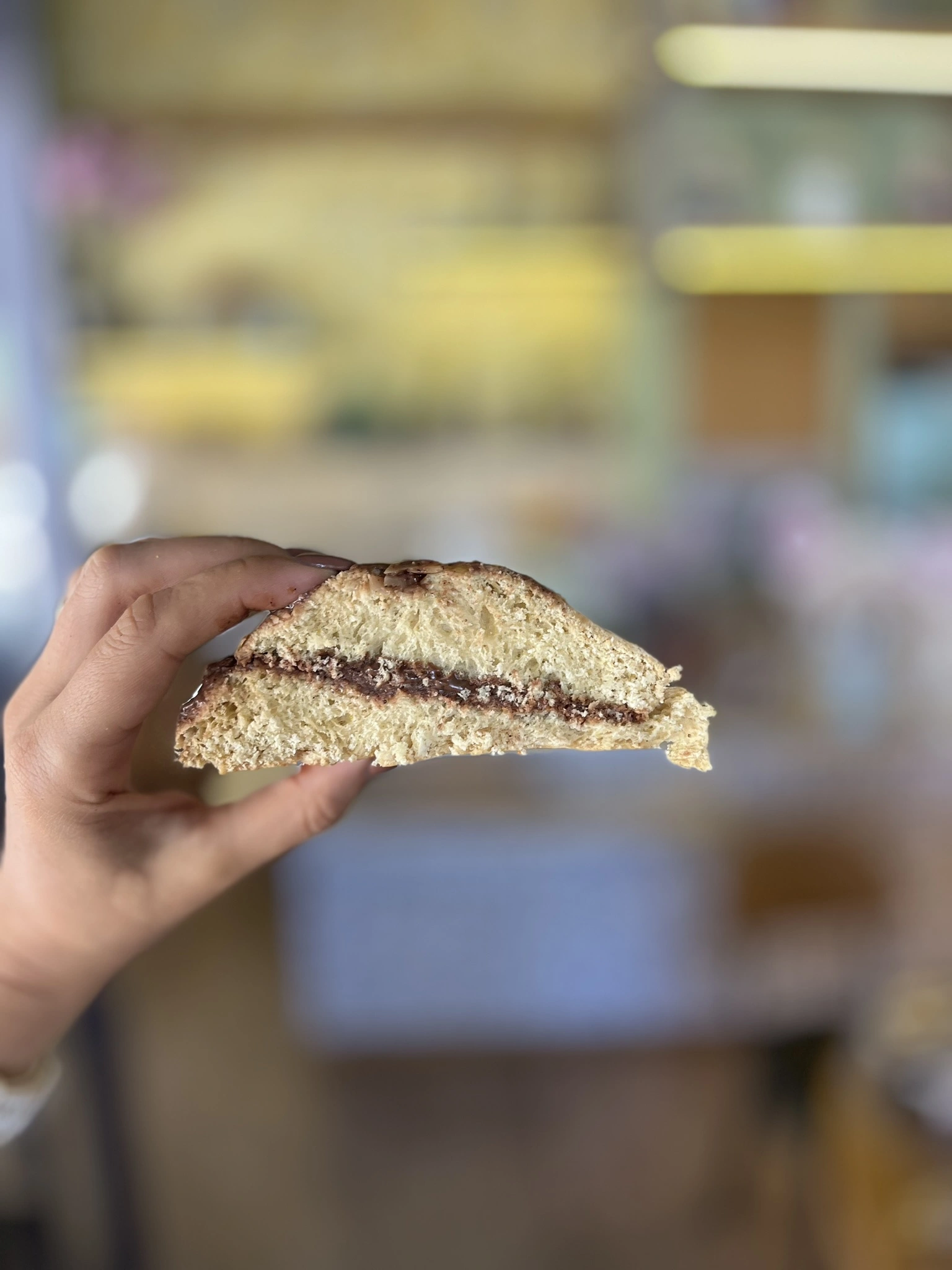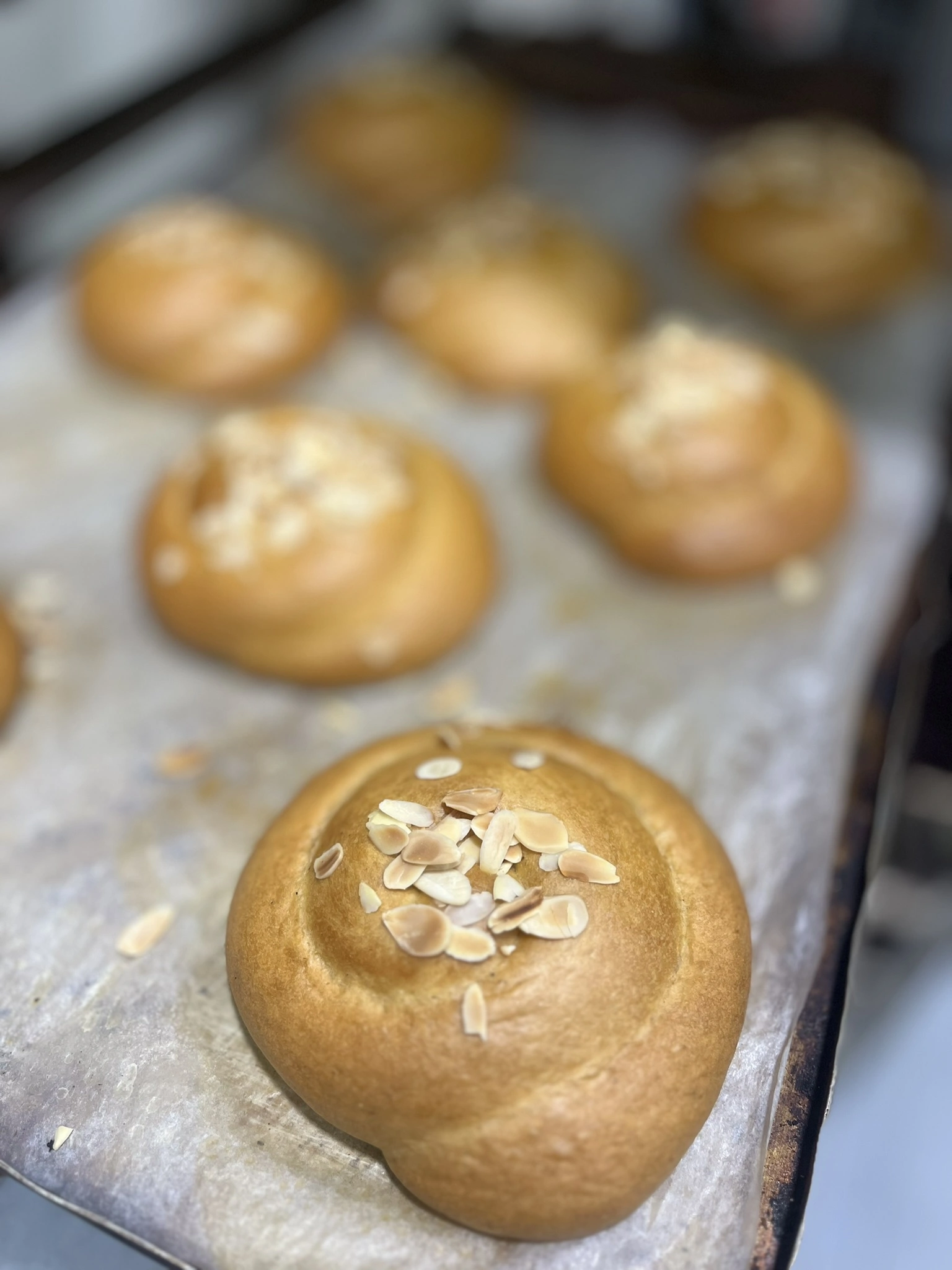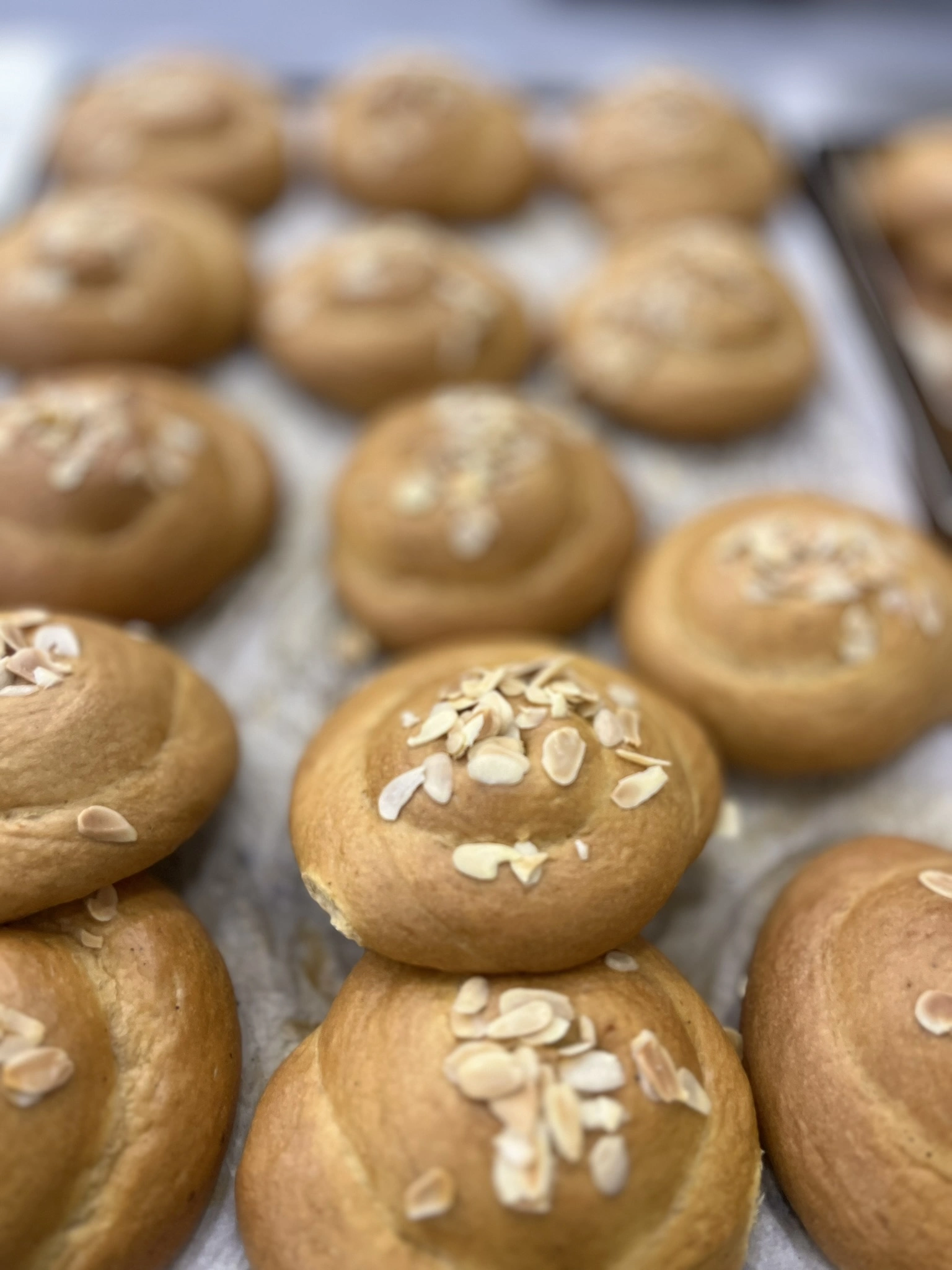 αλεύρι, γάλα αμυγδάλου, ζάχαρη καρύδας, πορτοκάλι, κακουλέ, μαχλέπι, μαστίχα, σιρόπι αγαύης, φιλέ αμυγδάλου